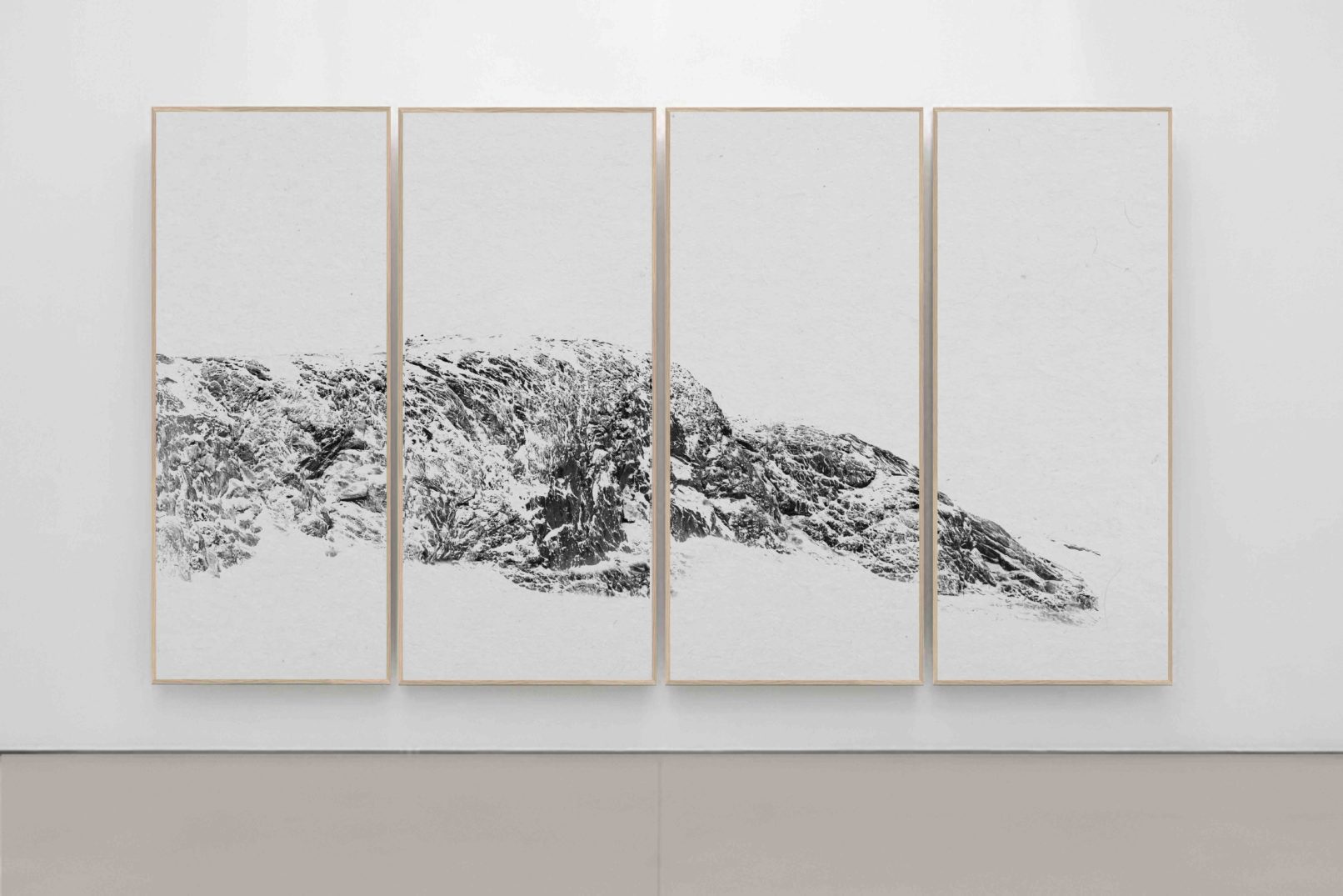 Les jeux subtils de profondeur autour de l’architecture naturelle sont soulignés par l’utilisation de papier japonais qui grâce à sa matérialité et son grain fortement présents font écho au rythme des roches volcaniques.