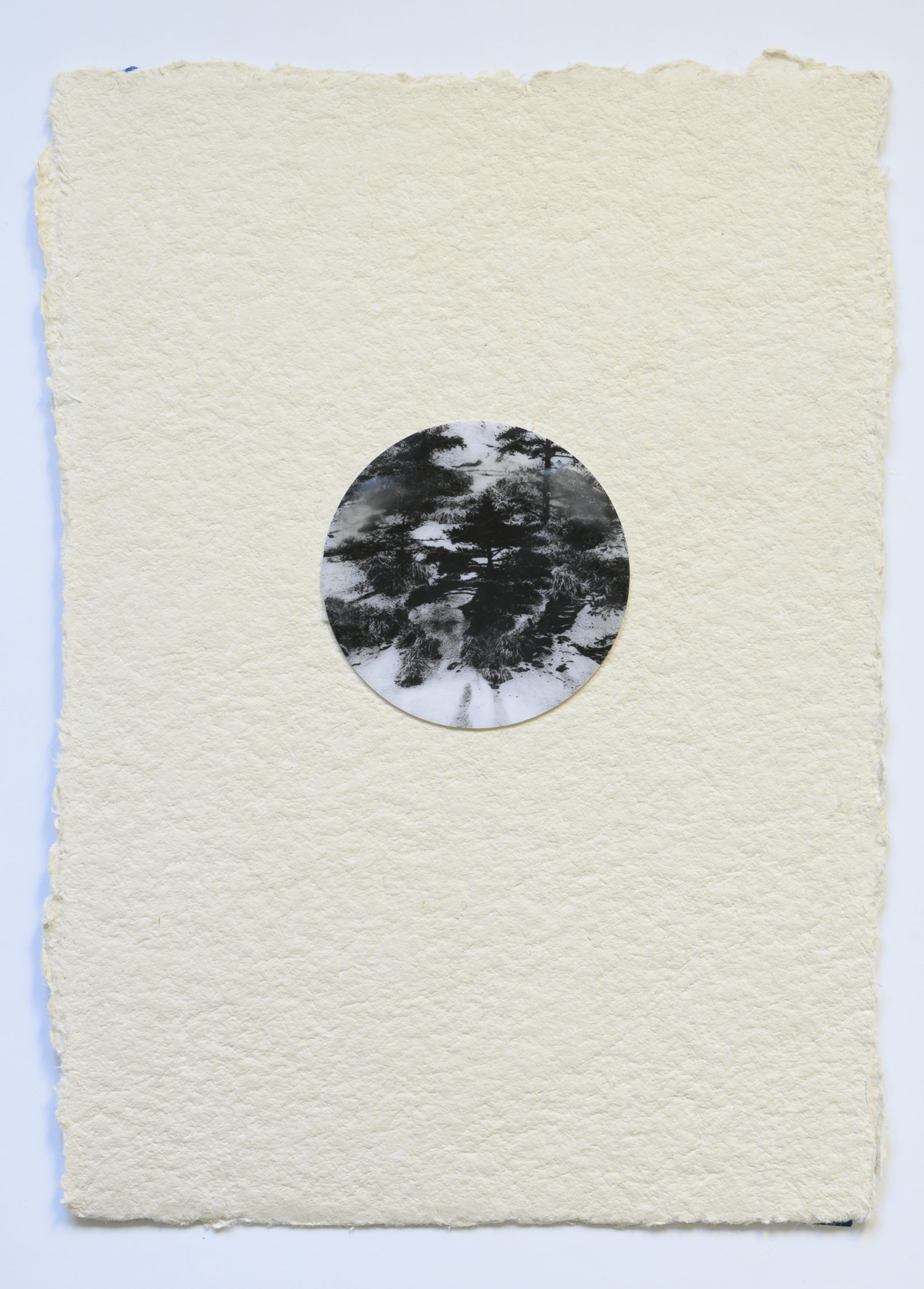 Technique: mixte, papier fait main, encre pigmentaire et cire d’abeille